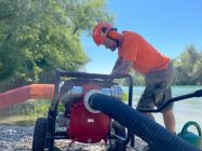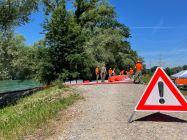 Teile der Unterstützungs-Kompanie (Pioniere und Logistik) übten die Hochwasserbekämpfung an der Reuss in Jonen. Ein gezielter, schneller und sicherer Einsatz der Beaver-Hochwasserschutzelemente und der verschiedenen Wasserpumpen, aber auch die Sicherheit der Mannschaft, muss regelmässig beübt und vertieft werden.