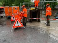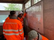 Als Nebenübungsplatz wurden in Jonen die Hochwassersperren "Beaver" an der Reuss beübt. Auch dieses Training ist wichtig, um im Falle eines Hochwassers schnell und kompetent mit den Partnerorganisationen im Bevölkerungsschutz zusammenzuarbeiten.