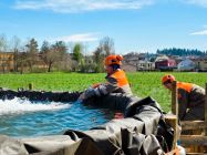 Der Höhepunkt der Woche war eine gemeinsame Abendübung am 1. April, bei der die Zivilschützer zusammen mit dem Samariterverein Freiamt+ den Einsatz im Ereignisfall simulierte. Ebenfalls wurde zusammen mit Centralheli das bauen und betreiben eines Löschwasserbecken beübt.